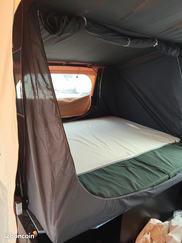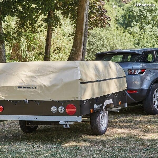 L'armature simple et arrondie de la caravane permet un montage aisé. Deux positions facilitent le chargement sur plateau et vous disposez d'une bâche ajustable.