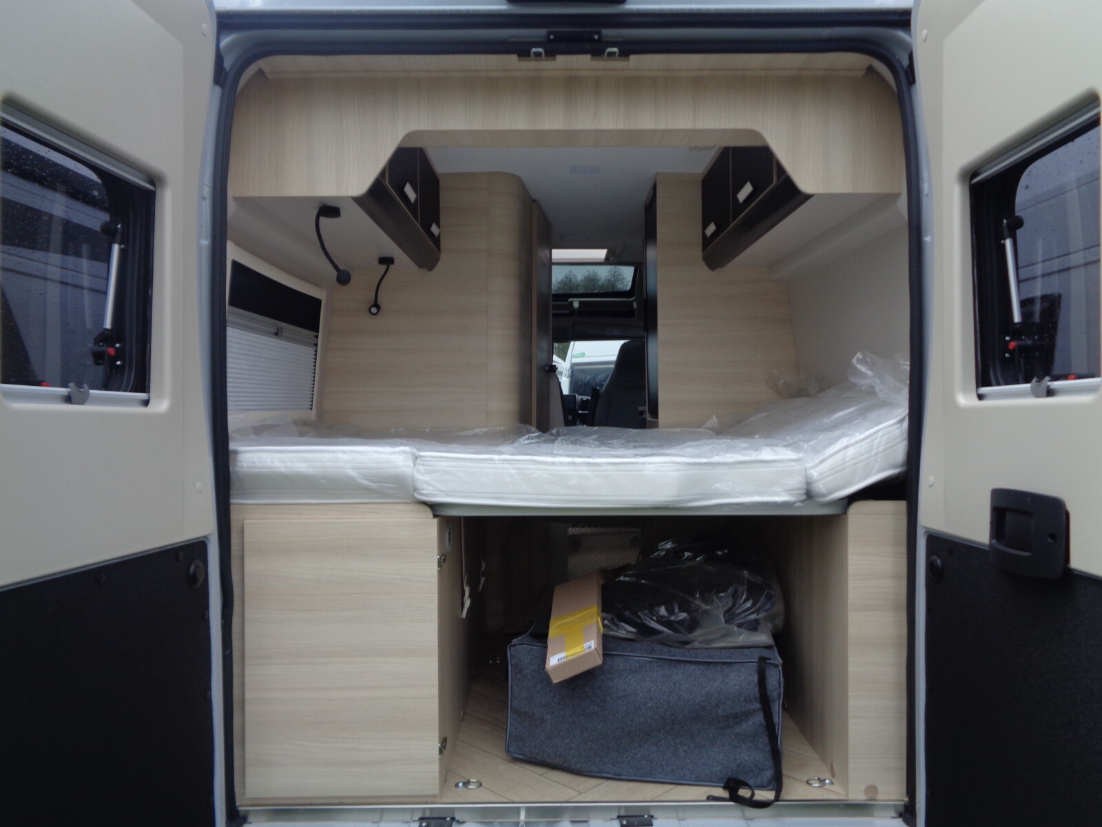 - Pack accessoires : Store extérieur, panneau solaire 200W, éclairage extérieur, moustiquaire de porte, stores intérieur cabine, complément couchage dinette
