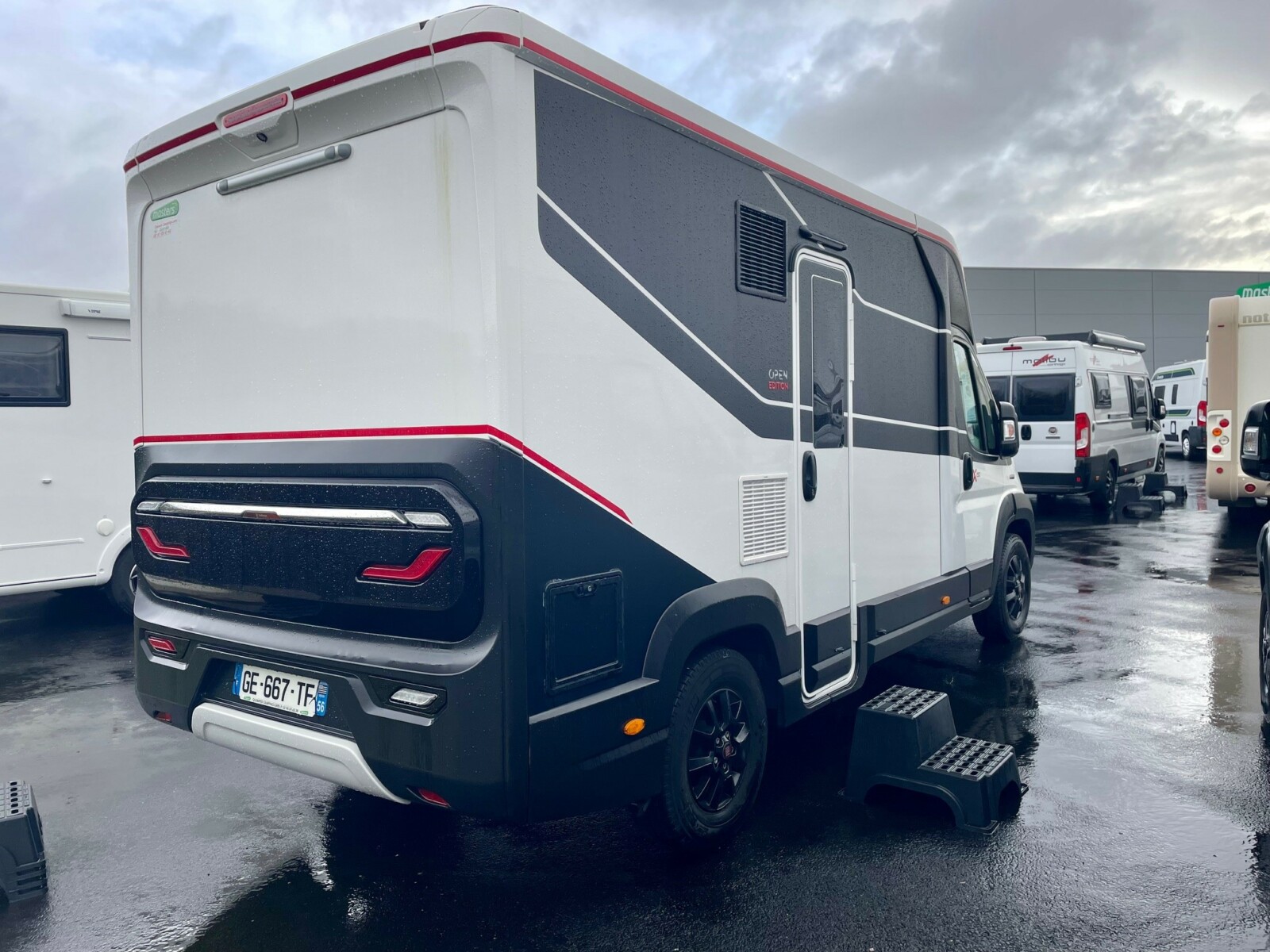 Modèle très recherché pour sa compacité (moins de 6m) et son immense salon, idéal pour voyager à deux ou en famille tout en restant maniable.