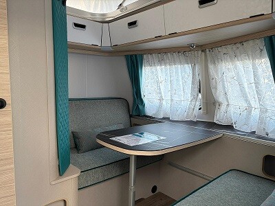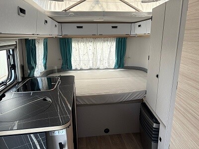 - Lit transversal (198 x 140 cm) et lit dinette (198 x 98 – 94 cm)