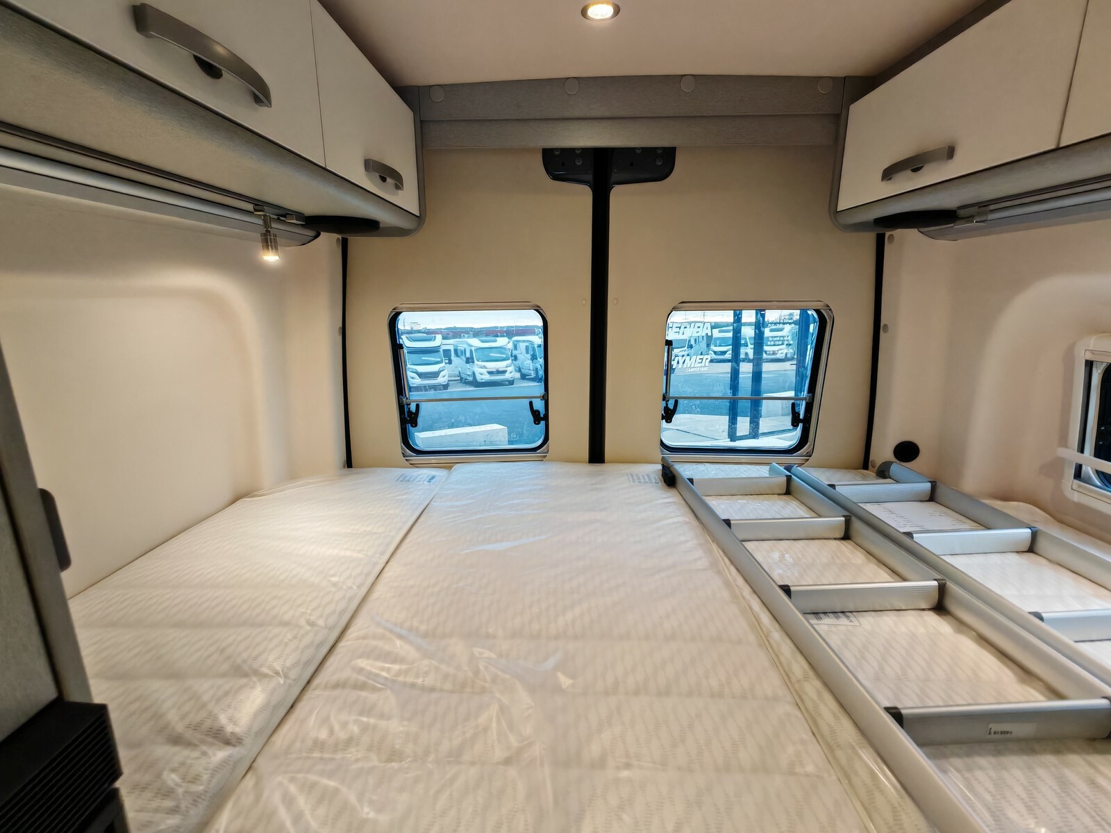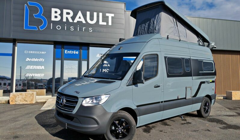 - Pack "Campus" (Régulateur de vitesse actif "Distronic Plus" avec commandes au volant, boîte de vitesse automatique 9G-Tronic, système multimédia MBUX à écran tactile 10.25" avec caméra de recul et navigation, prédisposition audio avec 4 haut-parleurs, instrumentation avec écran "Pixel-Matrix" Mercedes, volant cuir, climatisation semi-automatique "Tempmatic", stores plissés de cabine, prises supplémentaires, réservoir d'eaux usées isolé et chauffé, 2 coussins + pochette de rangement, mobilier coloris blanc, fixations Isofix, sérigraphie noir mat des jupes latérales, store 3m avec boîtier anthracite, toit relevable coloris du véhicule avec couchage double, jantes alu 16" coloris noir avec pneus 4 saisons, bandes décoratives chromées sur la calandre, rétroviseurs électriques et dégivrants, réservoir carburant 92l, peinture coloris gris bleu pastel, motorisation 170 Cv, tissu "Korfu"),