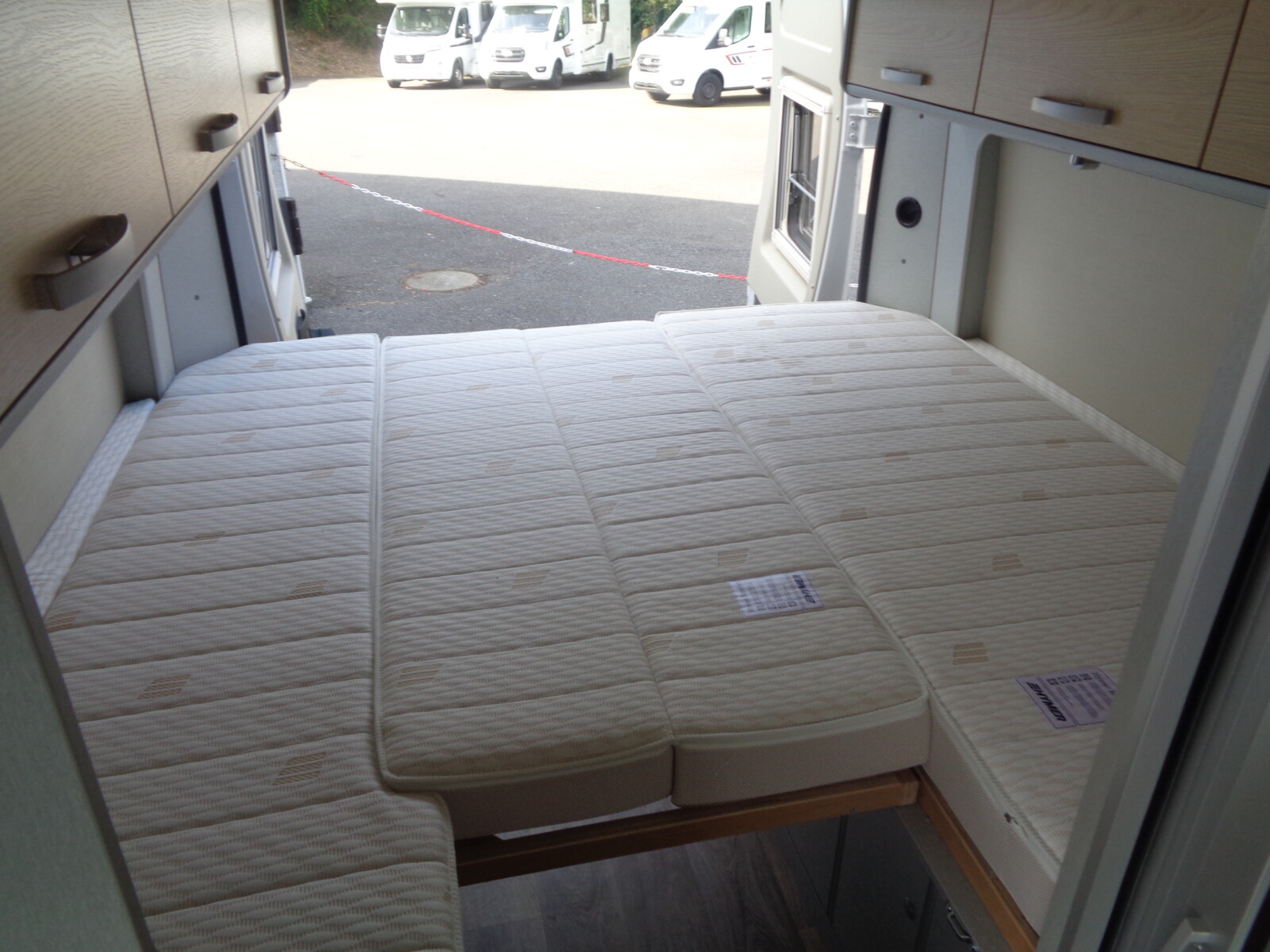 FOURGON 5.99M AVEC LITS JUMEAUX ET LIT DE PAVILLON.