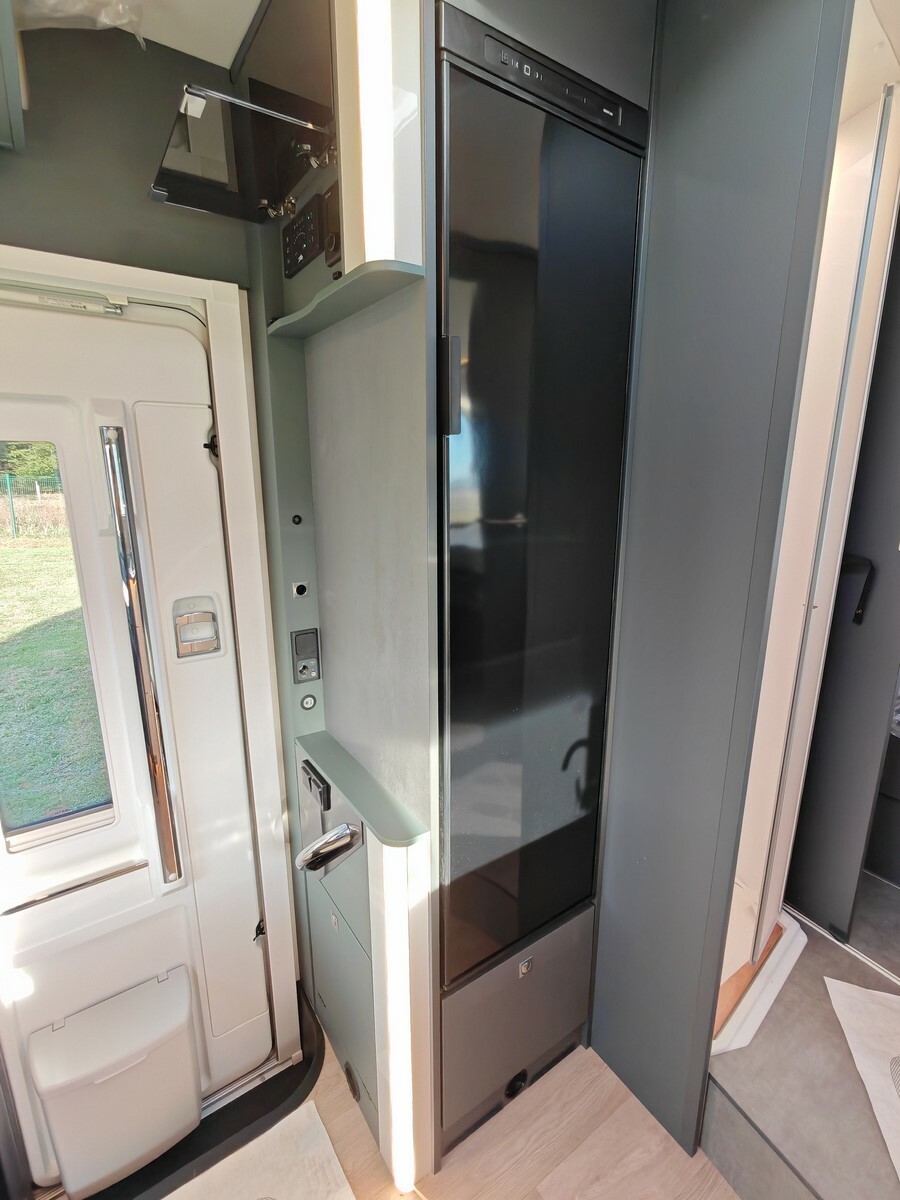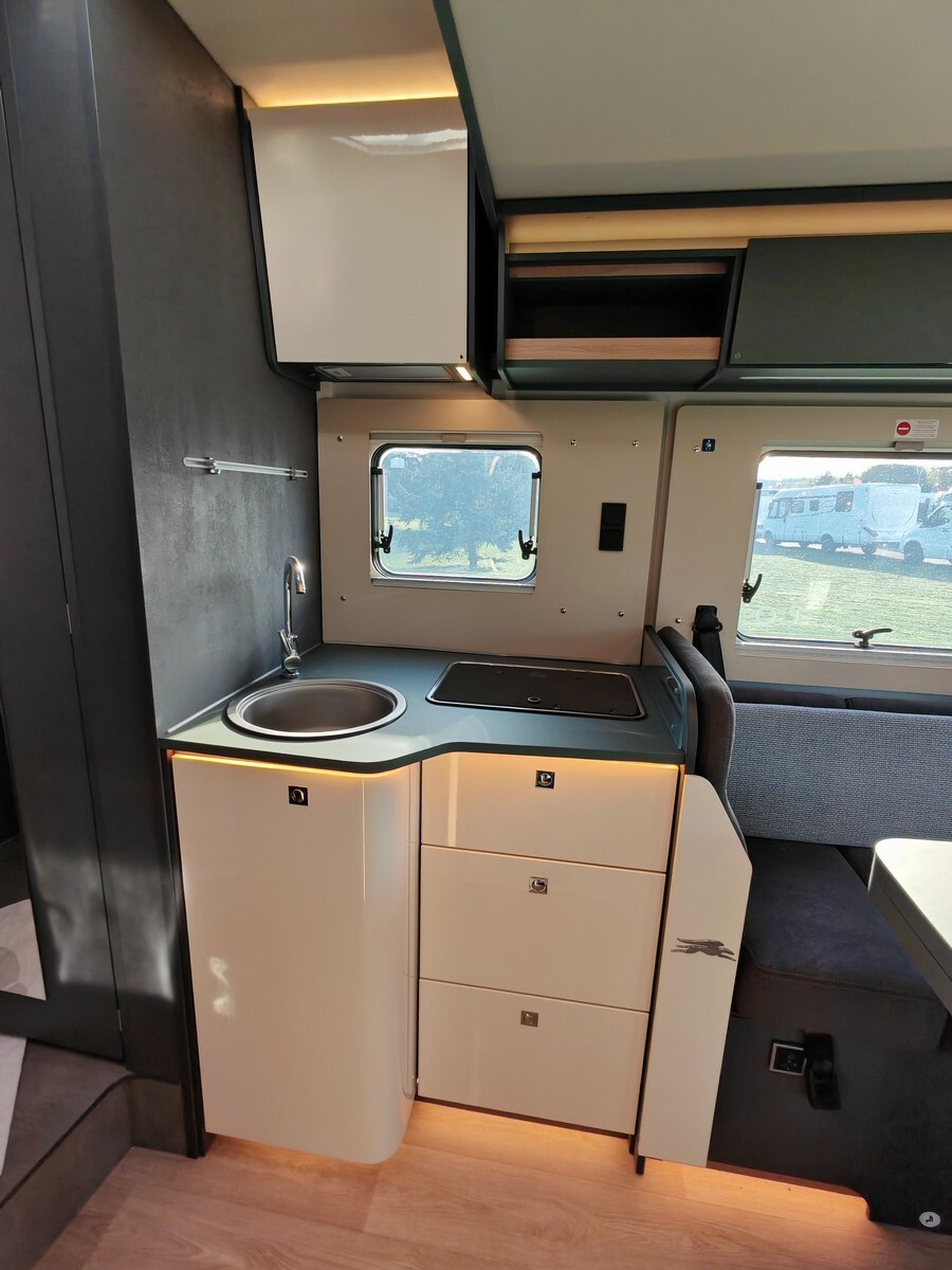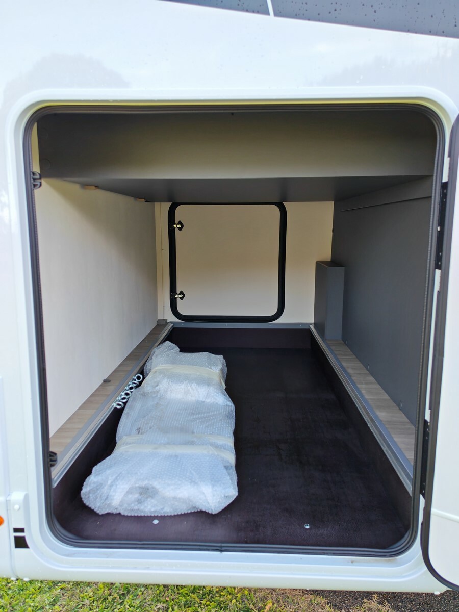 - Pack Confort (caillebotis de douche en bois, tapis de cabine, réservoir d'eaux usées isolé et chauffé, hotte aspirante, lanterneau Skyview dans la cabine, habillage parois arrière de la chambre en simili-cuir, grand tiroir et porte-bouteille coulissants dans la cuisine, porte cellule vitrée Premium XL avec fermeture centralisée et vérins à gaz, Prédisposition caméra de recul, sièges cabine assortis au salon),