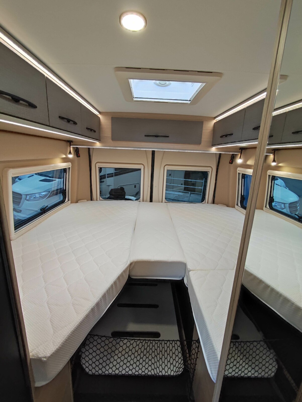 Grâce à son lit jumeau transformable en King Size, sa belle douche modulable, son maxi frigo à compression et son spacieux salon dans un seul et même espace compact, le R640 réunit les avantages d'un camping-car dans 6,36m pour vous transporter en France et dans le monde été comme hiver.